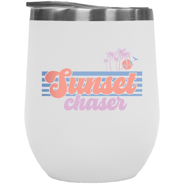 Make Your Mark Design Sunset Chaser with Beach Palm Trees Art Merch Gift, White 12oz Wine Tumbler
