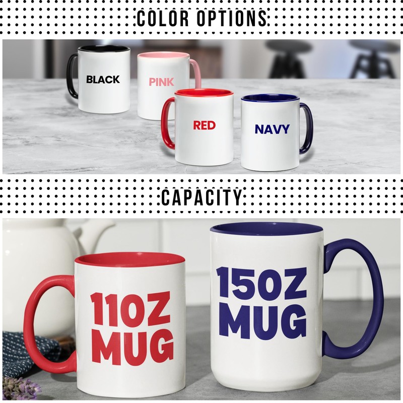 • HOW TO CHOOSE YOUR MUG COLOR & CAPACITY: To view available mugs colors and capacity, click the "Customize Now" button. Then, select your preferred color and capacity.