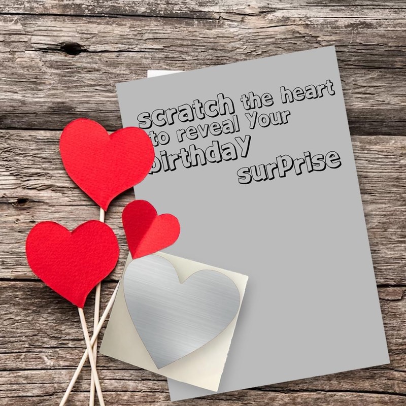 Make Your Own Scratch Card, Surprise Card, Scratch to Reveal Card, Birthday Wish Greeting Grey Scratch Heart Card (Z06)