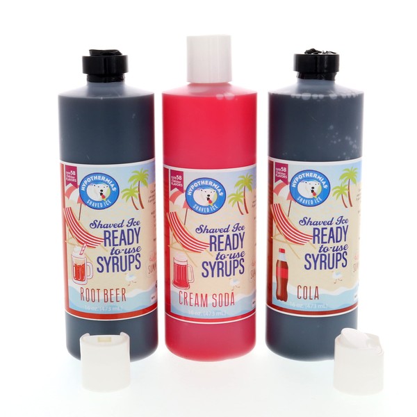 - 🥤 3 DELICIOUS FLAVORS - Hypothermias MAKE YOUR OWN SODA (3 Pack - COLA, RED CREAM SODA, ROOT BEER * free of caffeine! Why buy just one flavor syrup when you can get our VARIETY PACK of Hawaiian ice syrup? Make a drink or snow cone with our Cola for an old-fashioned soda fountain experience. CREAM SODA is red in color and makes a delicious sodastream drink or snow cone. ROOT BEER has subtle hints of various spices, sassafras and the sweet, distinct taste of rootbeer.