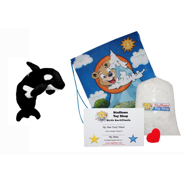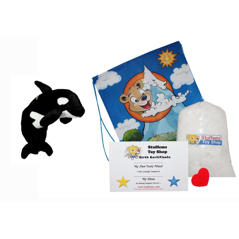 Make Your Own Stuffed Animal Onyx The Orca 16"- No Sew - Kit with Cute Backpack!