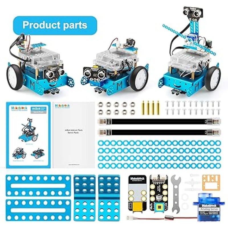 - Shape your mBot with new look: the pack includes RGB led, sound and light sensors etc, so you can transform your mBot to "Light chasing robot", "Intelligent desk light", "Scorpion robot" or anything you can imagine. (mBot Not Included)