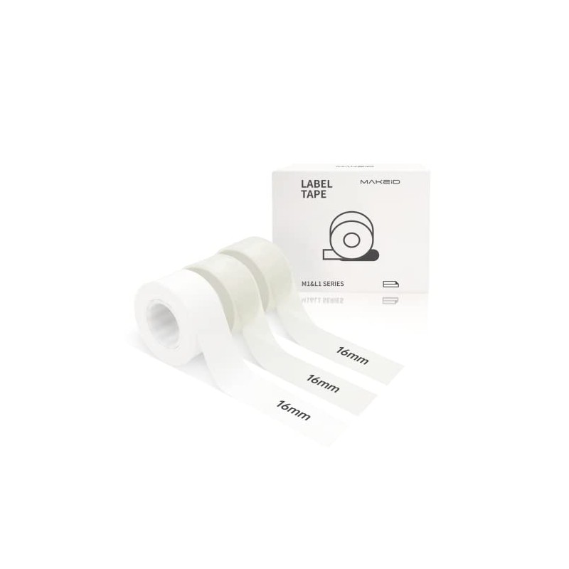 MakeID L1 Label Maker Tape Adapted Label Print Paper Refills Standard Laminated Office Labeling Tape Replacement 0.63 inch x 13' (16mm x 4m) Work with Model M1 L1 Q1, 3 Pack(White & Transparent)