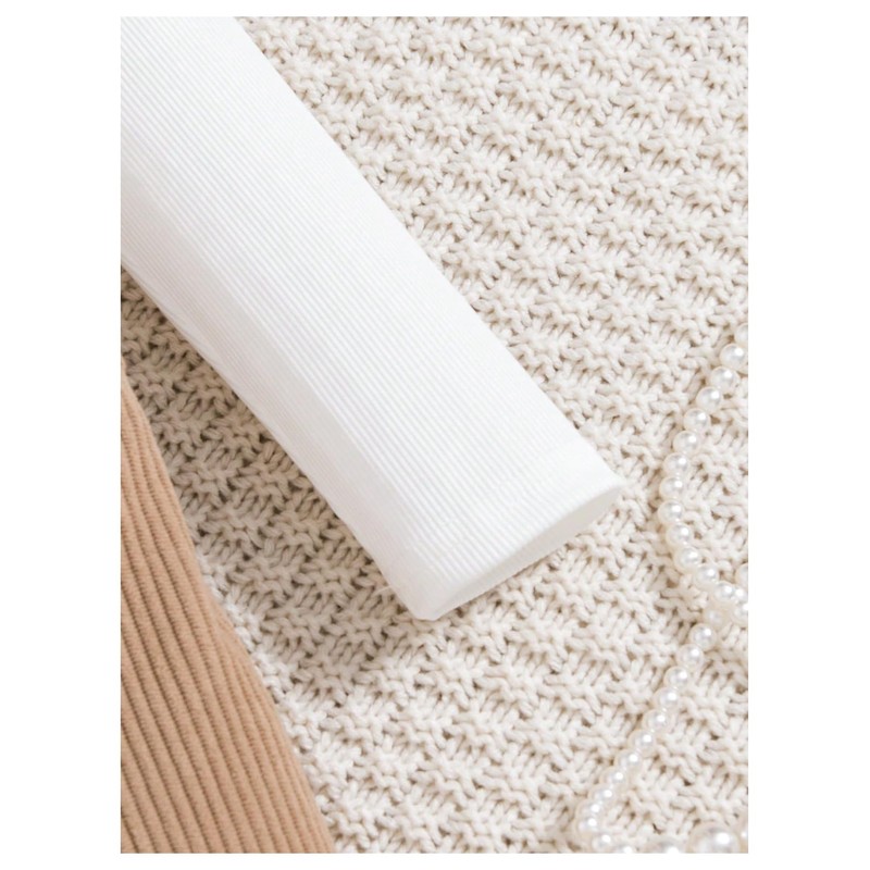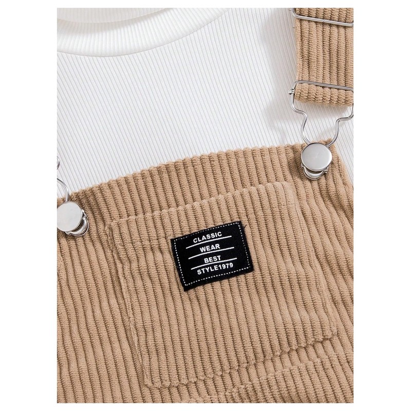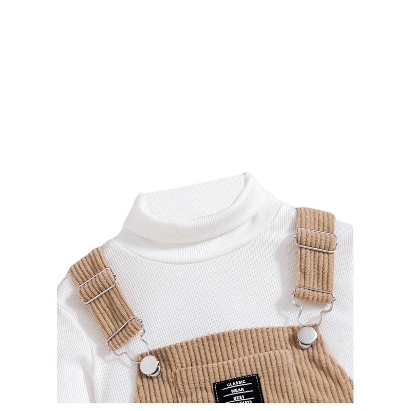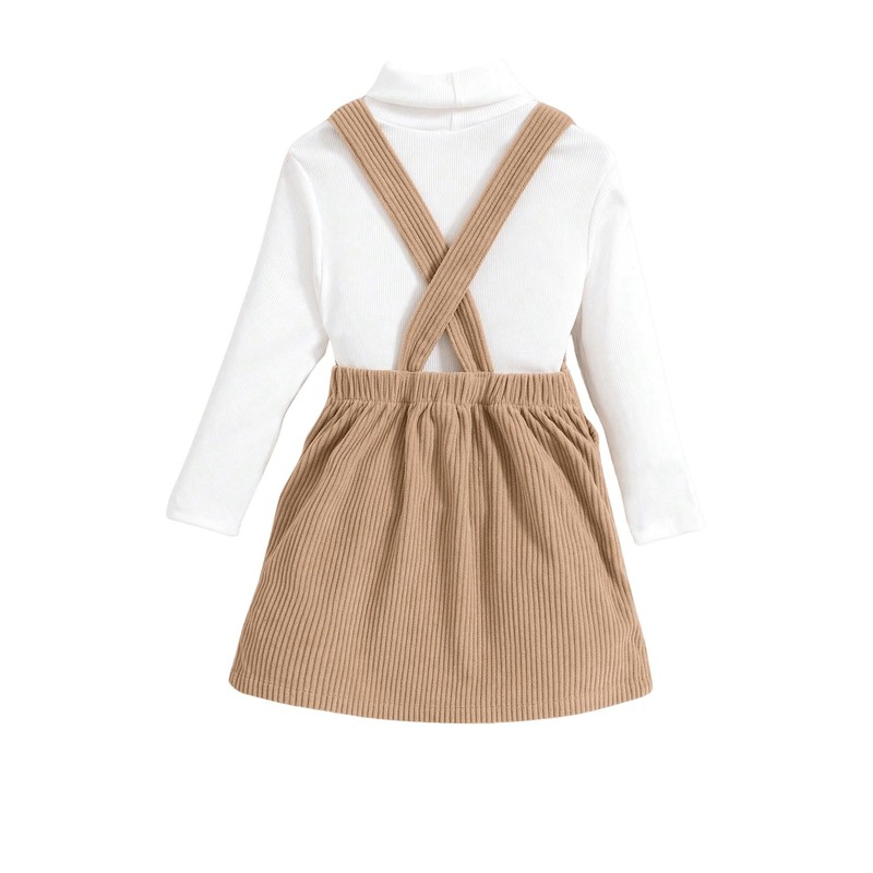 MakeMeChic Girl's Fall Outfits High Neck Long Sleeve Tops and Corduroy Overall Dress Cute Clothing Sets Beige and White 5Y
