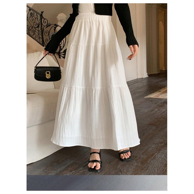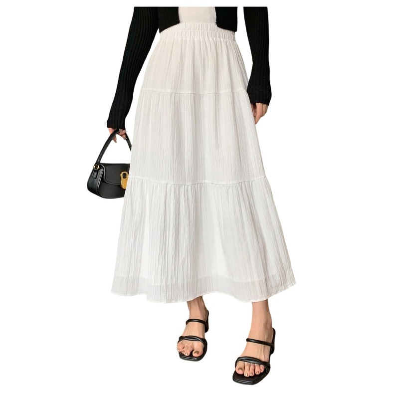 • Features: Ruffle hem,loose,solid,elastic waist,A-line,long skirt