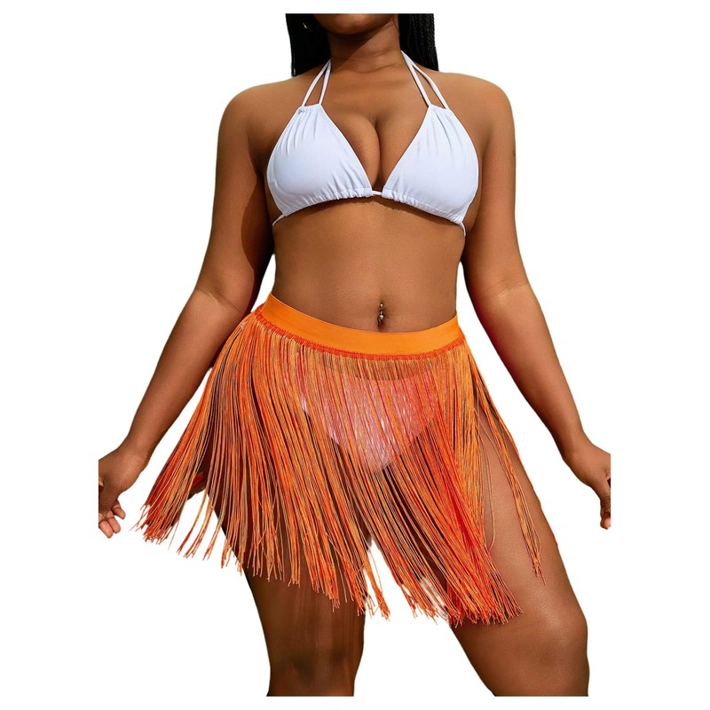 MakeMeChic Women's Plus Size Cover Up Fringe Beach Bathing Suit Mini Skirts, Orange, 4X-Large Plus