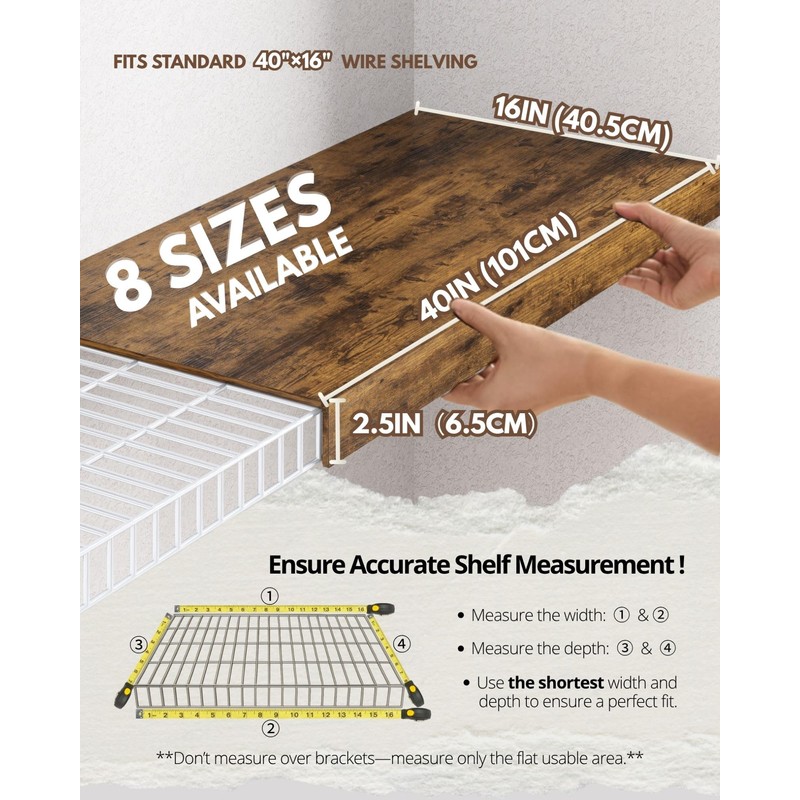 - [Durable Engineered Wood]: Made from high-density engineered wood, these wooden shelf covers for wire shelving resist dents and sagging under heavy items. A 4-pack fits standard 40×16 inch wire shelves with reliable strength