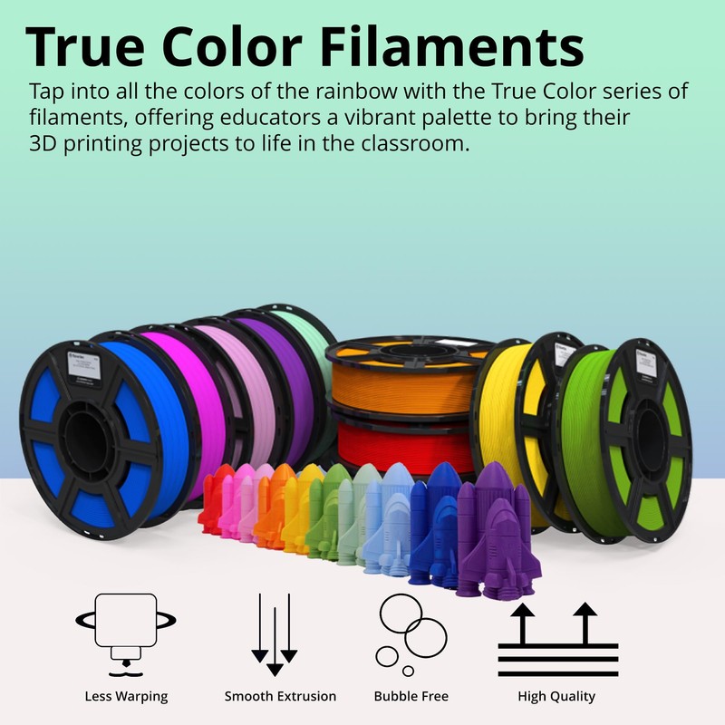 - Ideal Use: The MakerBot Sketch PLA Filament True Color series offers educators a vibrant palette to bring their 3D printing projects to life in the classroom