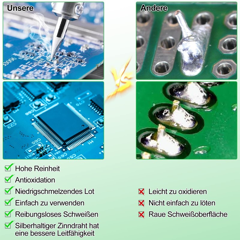 • Good performance: flexible thin wire, great for home soldering workers. Soldering can be done quickly with the solder wire spool