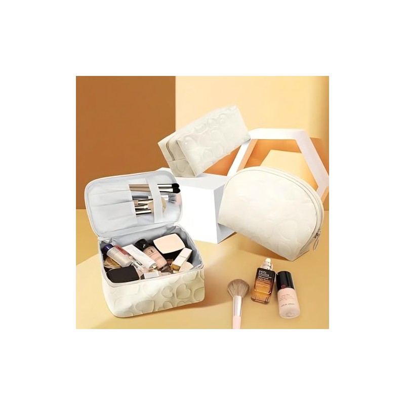 - Travel Cosmetic Bag: Made of high-quality PU leather, this makeup bag is flexible, scratch-resistant, waterproof, and wrinkle-free. Lightweight and portable, the 3-piece set is perfect for home or travel use.