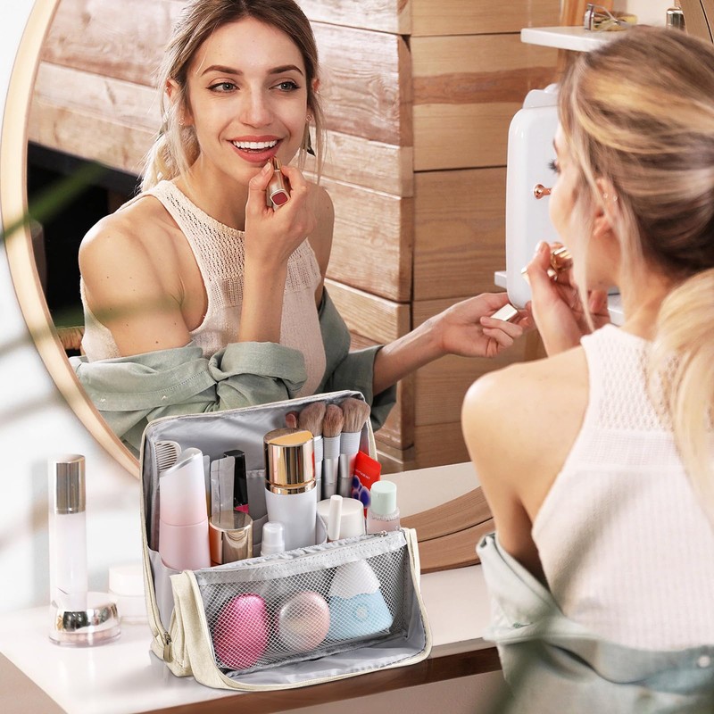 - Stable and Standalone Structure: This makeup bag is effortlessly fixed and fully functional. This makes access to beauty products easier and helps maintain the neat look of the dresser.