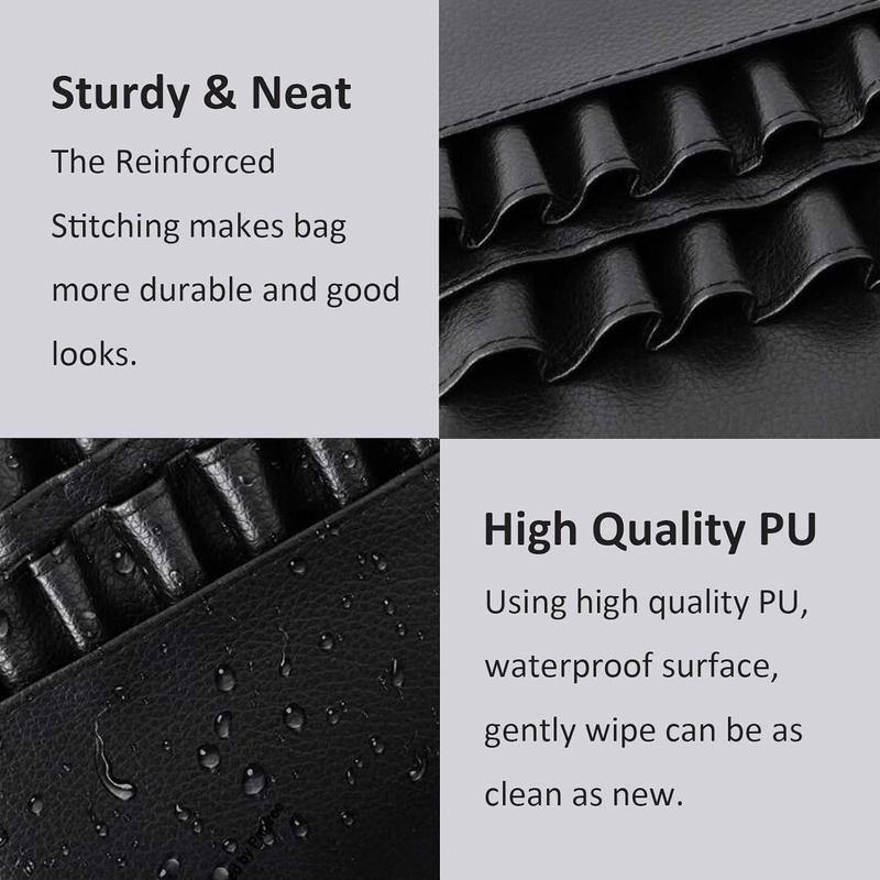 HIGH-GRADE MATERIAL: Brushes pouch is made of high-quality and soft PU ,water-resistant and sturdy,easy to clean.
