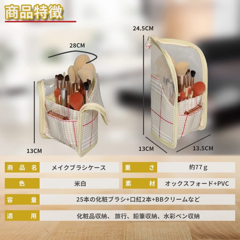 Makeup Brush Case, Brush Stand, Cosmetic Brush Pouch, Pen Case, Large Capacity, Cosmetics Bag, Small Items, Business Trip, Travel, Storage, beige