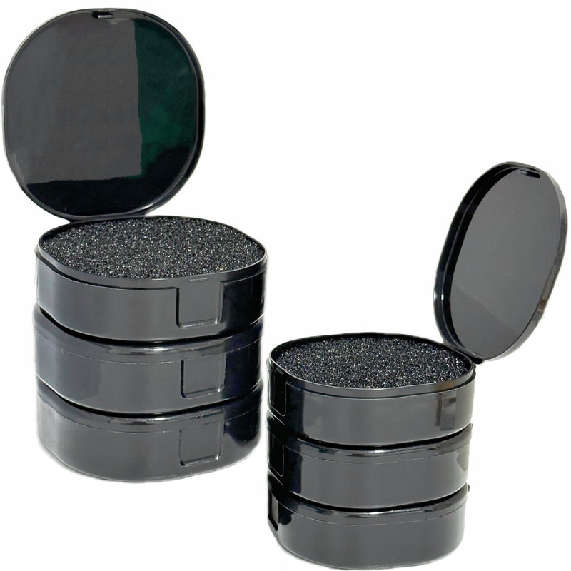 - Solid Makeup Brush Cleaner: Pack of 6 upgraded black makeup brush sponge cleanser with 6 plastic boxes. Removal color without water and drying time!