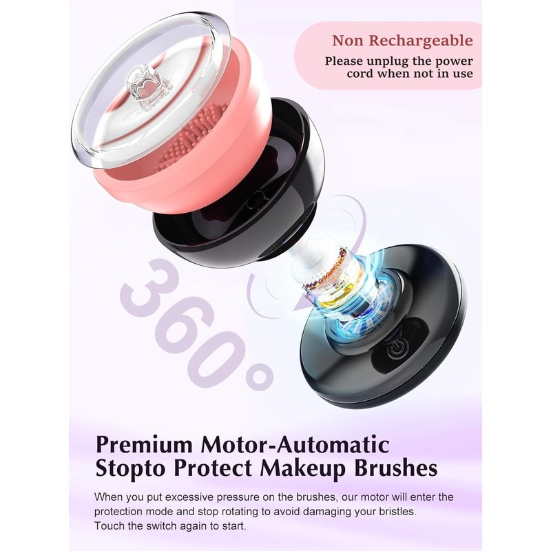 - Quick and Easy Cleaning: Our electric makeup brush cleaner adopts a one-button switch design. It can thoroughly clean all types of makeup brushes quickly, saving you time and effort while refreshing your brushes. Say goodbye to manual brush cleaning, providing an effortless cleaning experience (Non rechargeable: Please unplug the power cable when not in use)