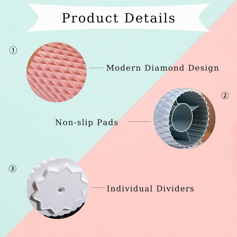- 360° Rotation: This innovative Makeup Brush Holder is designed with smooth-rotating capabilities, allowing you to spin it 360° effortlessly. The high-quality base ensures stability, enabling easy access to all your beauty essentials from any angle