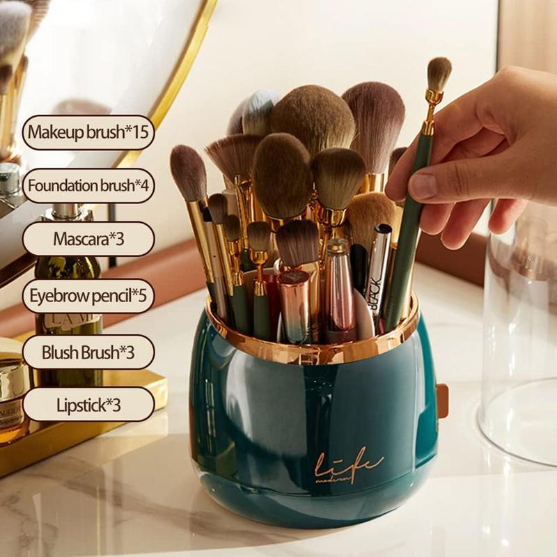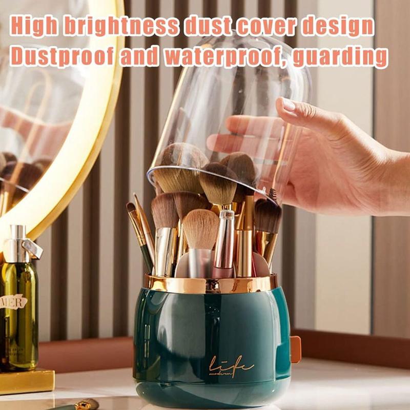 Makeup Brush Holder, Rotatable Makeup Brush Storage Box with Clear Lid, Acrylic Makeup Brush Storage Container, Makeup Organizer for Home & Travel