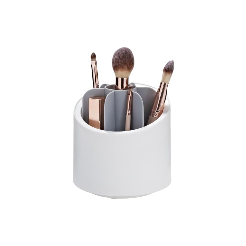 Makeup Brush Organiser, Grey Holder with Dividers, Rotating Cosmetics Storage
