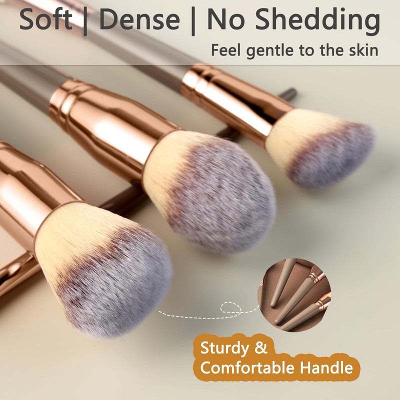 - 【Soft and Durable Brushes for All Skin Types】The makeup brush kit features high-end alloy and wood handles, paired with ultra-soft nylon bristles. These fine, dense bristles hold powder well and rarely shed, ensuring long-lasting performance. Perfect for sensitive skin, offerring a gentle touch to skin without compromising on quality.