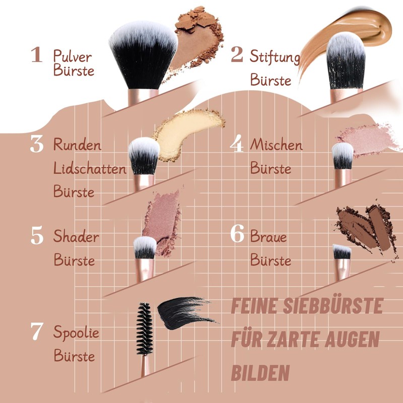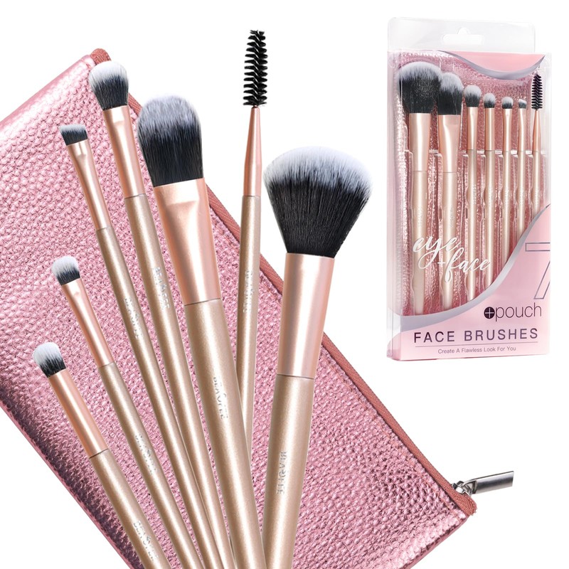- GET A COMPLETE MAKEUP BRUSH SET: This 7 piece makeup brush set is a professional brush set with all the essential brush essentials - 2 large kabuki brushes and 5 precision brushes, powder brush, foundation brush, round eye shadow brush, blending brush, shader brush, brow brush, spoolie brush.