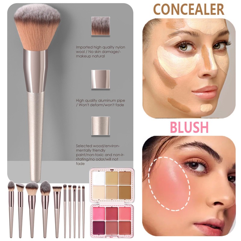 - 【EXCELLENT MAKEUP GIFT】-- Designed with convenience and simplicity in mind, this foundation palette is compact and portable, making it handy for traveling and on-the-go touch-ups. Also come with a makeup brush set, it makes an excellent gift for anyone looking to achieve a flawless, natural-looking complexion with minimal effort.