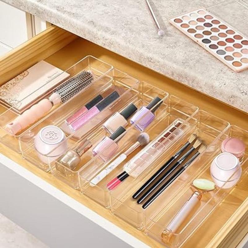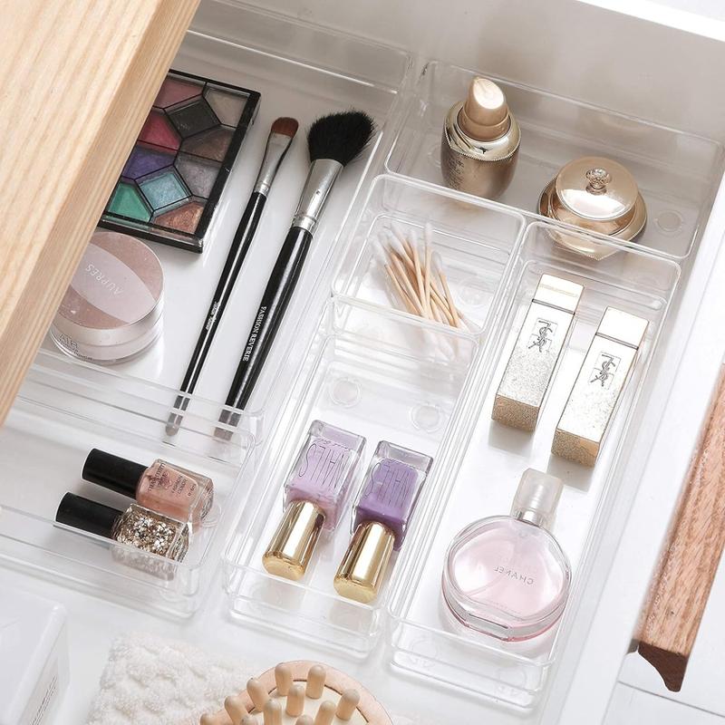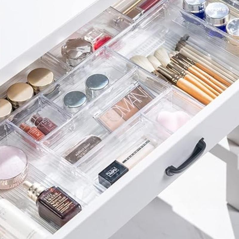 Makeup Drawer Organizer Storage Trays For Makeup, Kitchen, Bedroom, Office, Desk, Versatile Plastic Clear Drawer Organizer.