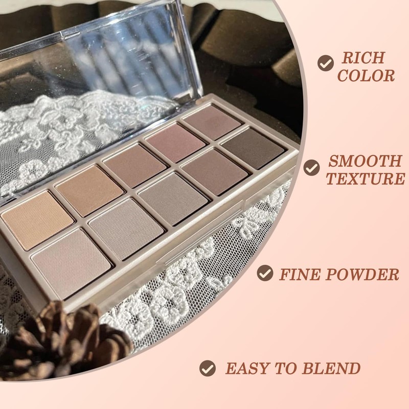 <strong>10-Color Matte Eyeshadow Palette</strong> - Create stunning eye looks with this highly pigmented <strong>mini makeup palette</strong> featuring rich matte and <strong>shimmer eyeshadow</strong> shades. Our <strong>glitter eyeshadow palette</strong> delivers intense color payoff that lasts all day without fading.<br><br>🌸 <strong>Waterproof & Sweatproof</strong> formula stays for 24 hours - perfect for hot weather or special occasions. The ultra-blendable powder glides on smoothly without fallout or creasing.<br><br>💖 Professional warm-toned <strong>makeup palette</strong> includes 10 versatile shades from neutral taupes to deep browns. Layer colors for dramatic effects or use single shades for natural daytime looks.<br><br>🌟 Compact <strong>mini eyeshadow palette</strong> design fits perfectly in your purse for touch-ups. Makes an ideal gift for makeup lovers!<br><br>How to use:<br>1️⃣ Prep eyelids with primer<br>2️⃣ Apply base shade all over lid<br>3️⃣ Build depth with medium tones in crease<br>4️⃣ Highlight brow bone with light shimmer<br><br>🦋 This <strong>eye palette makeup</strong> features our signature long-wearing technology that prevents smudging while maintaining vibrant color intensity. The <strong>cool toned eyeshadow palette</strong> options complement all skin tones beautifully.