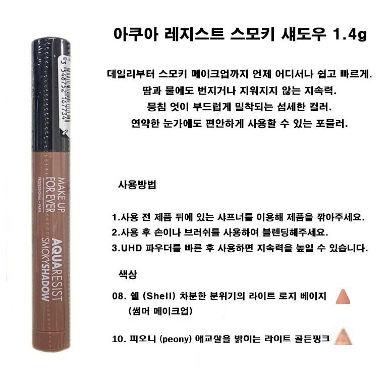 Makeup Forever Aqua Resist Smokey Shadow 1.4g/Shadow/No. 8 Shell/No. 10 Peony, No. 15 Quartz / 메이크업포에버 아쿠아 레지스트 스모키 섀도우 1.4g/쉐도우/8호 쉘/10호 피오니, 15호 쿼츠