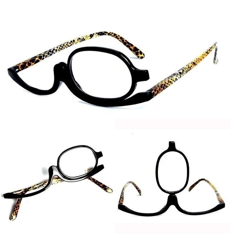 Makeup Glasses allow you to apply your eye makeup with clarity, precision and ease. This clever design features a magnifying lens that flips from one side of the frame to the other allowing you a clear view of what you are doing. Plus, these glasses are small, stylish and lightweight enough to be taken along with you Made from durable polycarbonate material, a lightweight frame and a Magnified lens that allows any mirror to be used Great for applying false eyelashes/eyeliner/mascara or contact lenses Swivel lens from left to right for easy makeup application