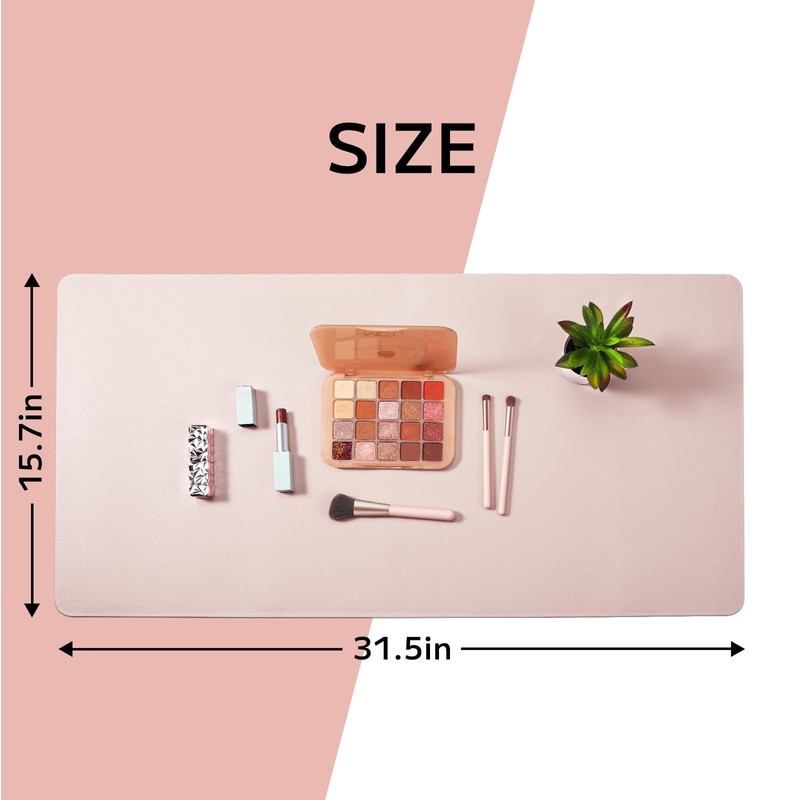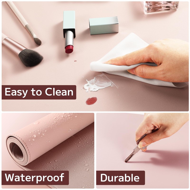 Makeup Mat for Vanity Top Protector, Waterproof Dual-Sided PU Leather Vanity Mat, Oilproof Dustproof Smooth and Soft, Ideal for Makeup Tables and Workbenches Pink