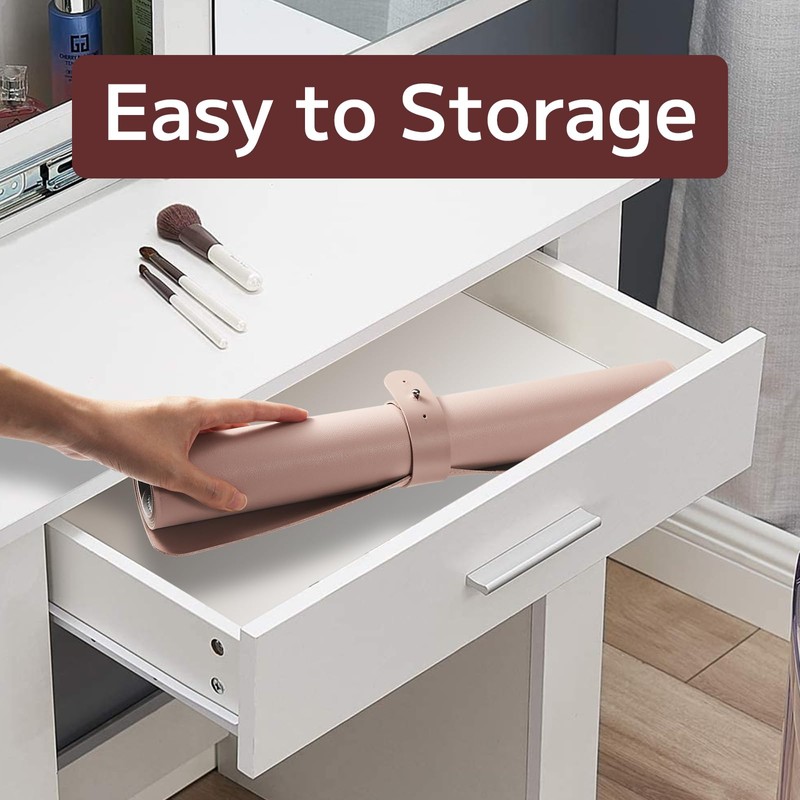 • 【Easy to Clean and Storage】This makeup mat is highly convenient with easy cleaning and storage. It is water and heat resistant, ensuring durability. Simply wipe it with soapy water or a makeup wipe to clean. Makeup mat for vanity comes with a strap for rolling up and effortless storage or portability.