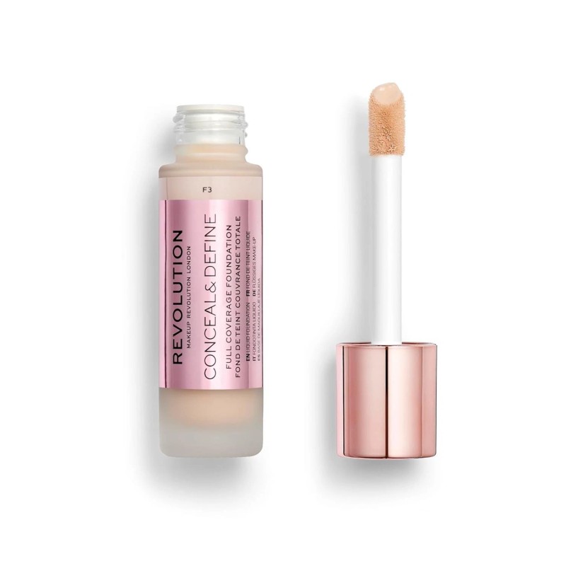 Revolution, Conceal & Define Foundation, Full Coverage, Long-Lasting Matte Finish, Vegan & Cruelty-Free, F3 Fair Skin Tones, 0.8 fl oz
