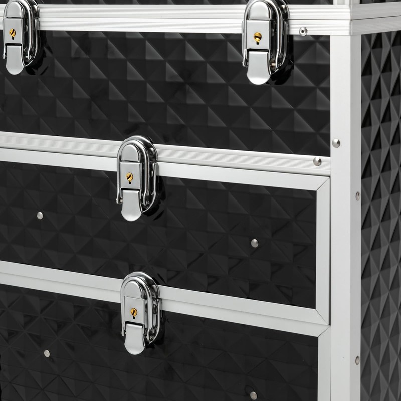 - 【Beautiful Appearance】: The glossy black finish with anti-scratch diamond patterns makes your makeup case more elegant and stylish, adding a touch of decor to your workplace.