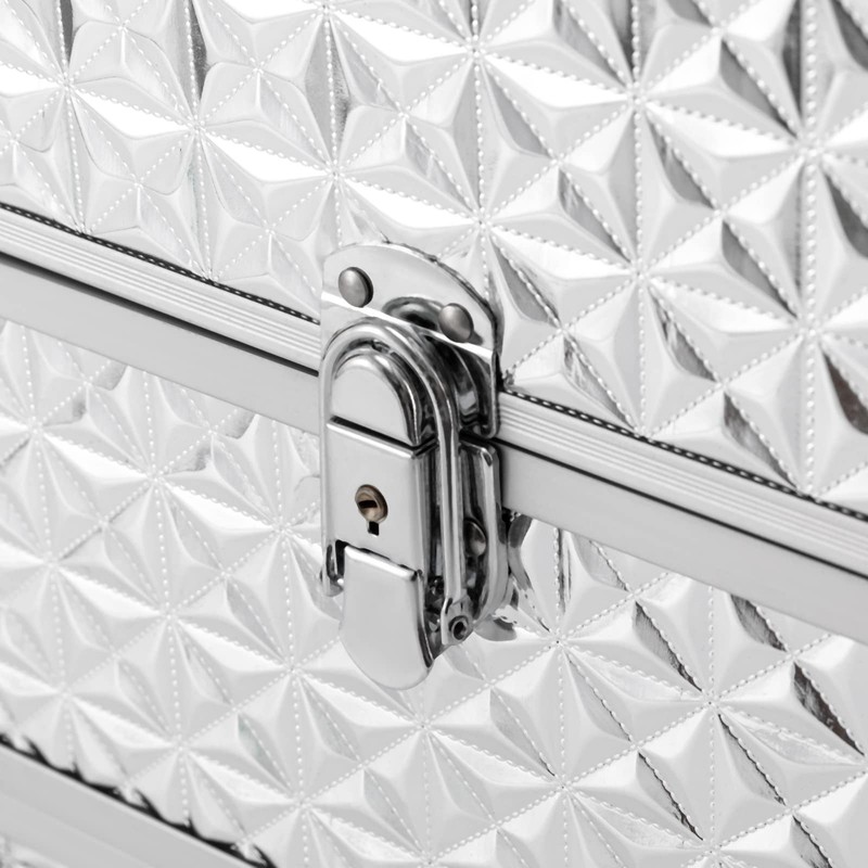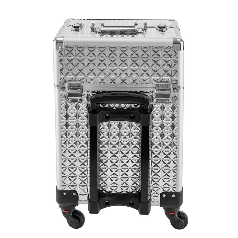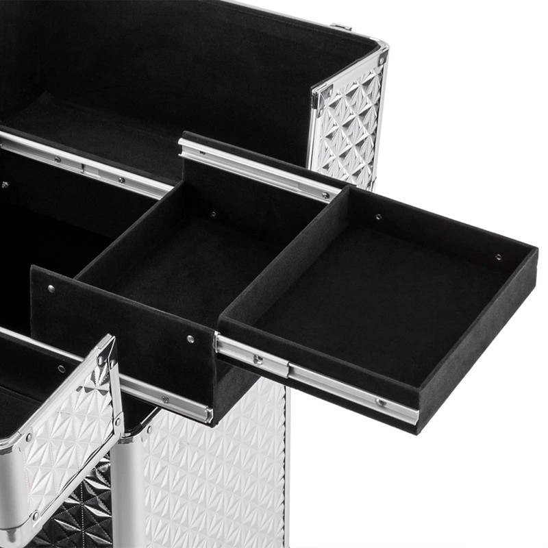 Makeup Rolling Train Case Rolling Nail Case, Professional Manicure Storage Case with Removable Universal Wheels, Cosmetic Organizer Box w/ Drawers&Locks, Large Cosmetic Trolley for Nail Art (Silver)