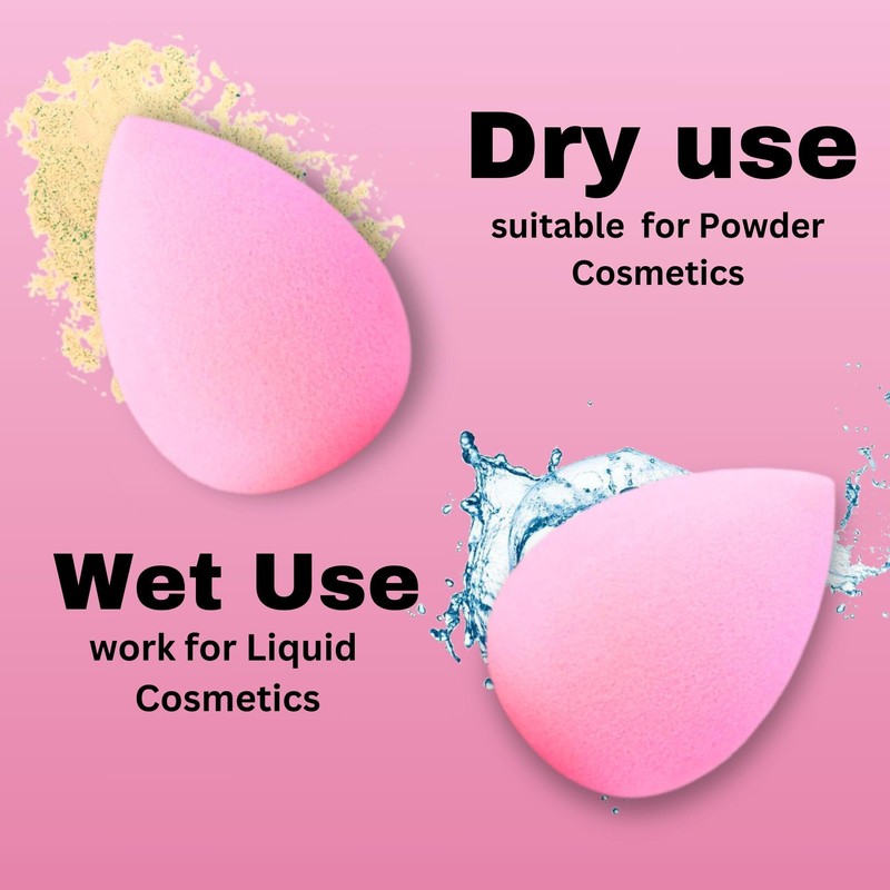 ★ Perfect Sponge Application:, many makeup enthusiasts use these makeup blender sponge dampened with water. When damp, the sponges expands and becomes softer, allowing it to blend products seamlessly into the skin. A damp sponge can create a dewy finish, giving the skin a healthy glow, while a dry sponge can provide fuller coverage for a more matte look.