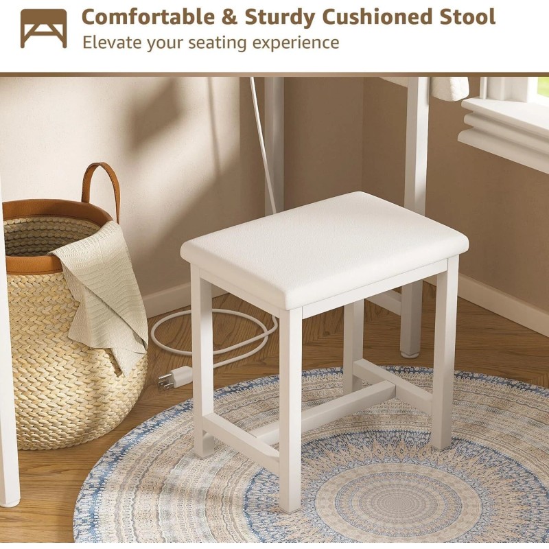 Makeup Vanity Desk with Mirror and Lights Small White Dressing Table with Chair