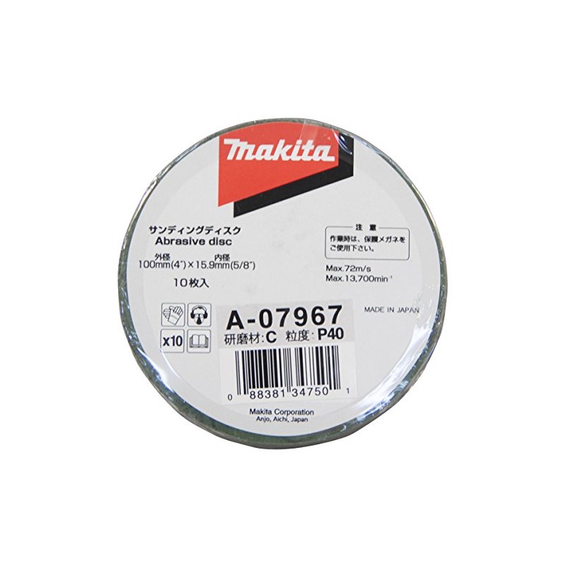 Makita A-07967 Sanding Disc, Outer Diameter 3.9 inches (100 mm), #40 (10 Pieces)