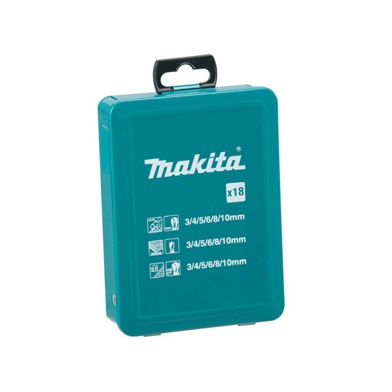- Product Name: Makita D-46399 Drill Bit Set of 18, Case Included, 6 Drill Bits for Ironwork, 6 Drill Bits for Woodworking and 6 Drill Bits for Concrete Drill Bits