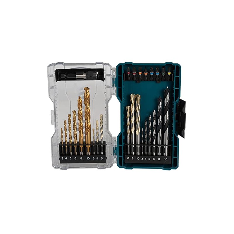 - Includes HSS tin drill bits, 3 mm, 4 mm, 5 mm, 6 mm, 8 mm and 10 mm, masonry drill bits 3 mm, 4 mm, 5 mm, 6 mm, 8 mm and 10 mm, wood drill bits 3 mm, 4 mm, 5 mm, 6 mm, 8 mm and 10 mm, 25 mm screw bits PH1, PH2, PZ2, PZ3, SL5. 0, SL6.0 and 6 mm hex sleeve