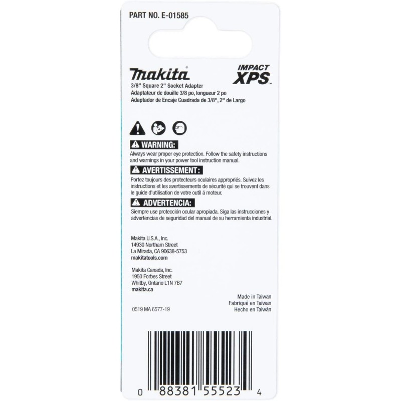 Makita Impact XPS is new innovation in fastening with insert bits and fastening accessories built for the demands of the professional contractor. The ImpactXPS 3/8" Square 2" Socket Adapter is designed exclusively for use with high-torque impact drivers, and is engineered to last up to 90-times longer than a standard adapter. Chamfered edges of the square drive end allows for easy installion and a retension ball helps secure the socket. The high quality steel construction provides increased durability and features a matte nickel surface for best in class corrosion resistance.