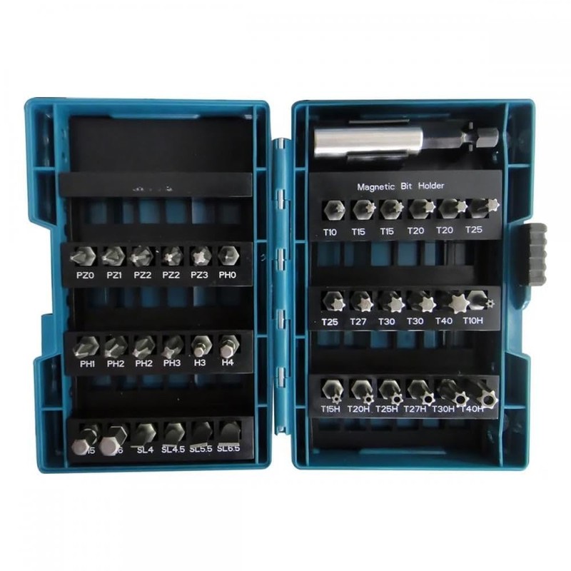 - Box contents: Makita bit box screwdriver bit set, 37-piece set in plastic box.