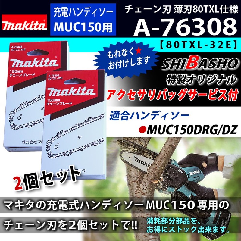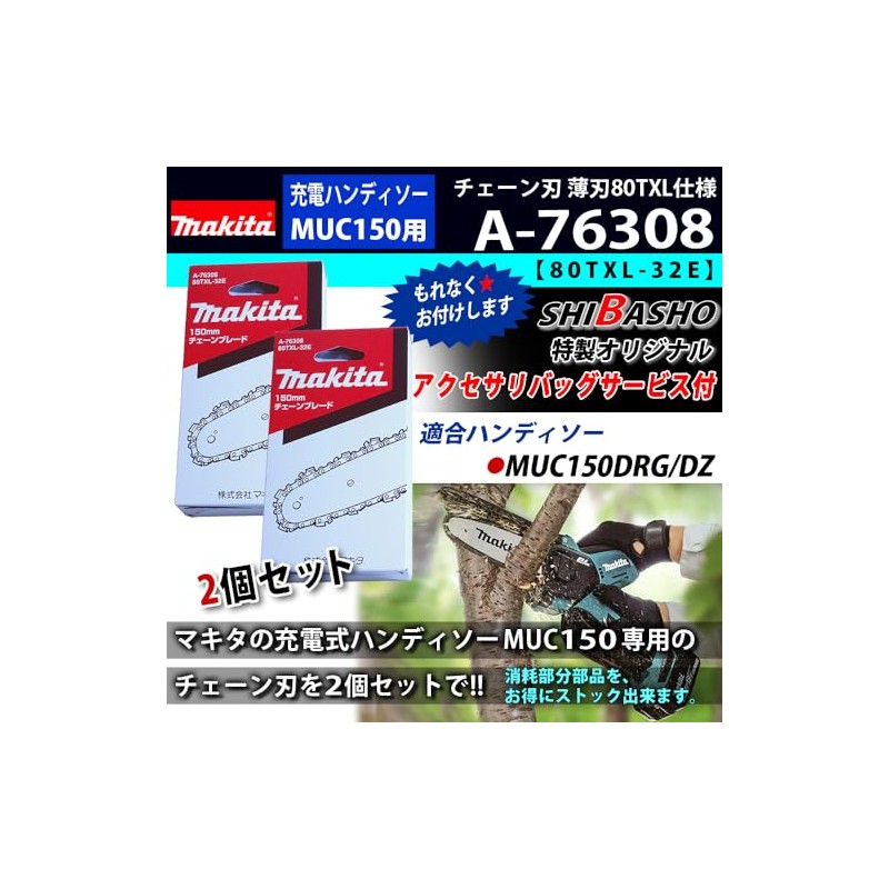 Makita MUC150 Chain Blade 80TXL-32E Thin Blade 80TXL Specification A-76308 Set of 2 (Includes Shiba Sho Accessory Bag)