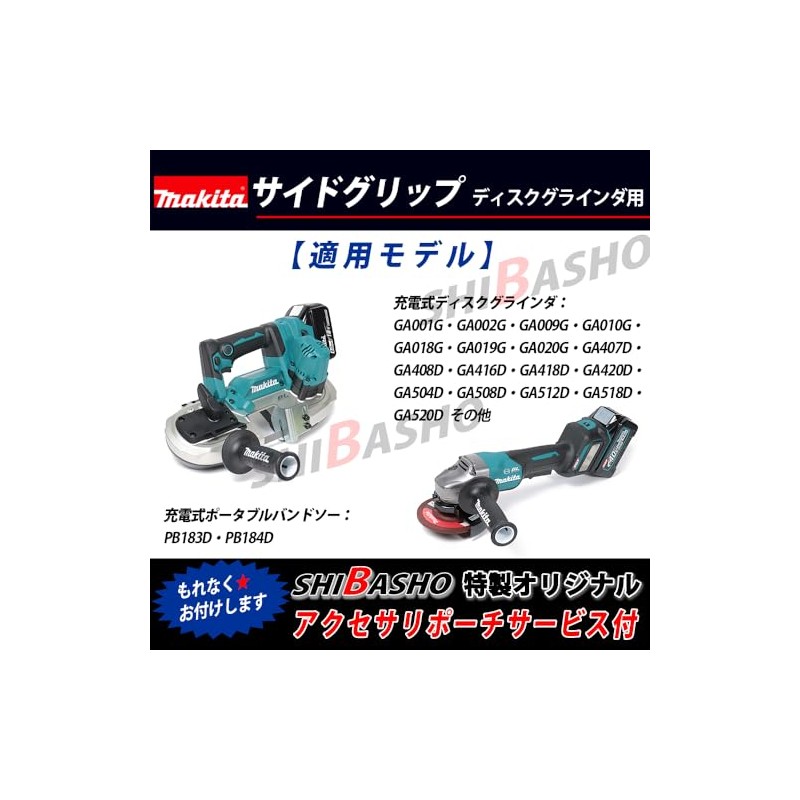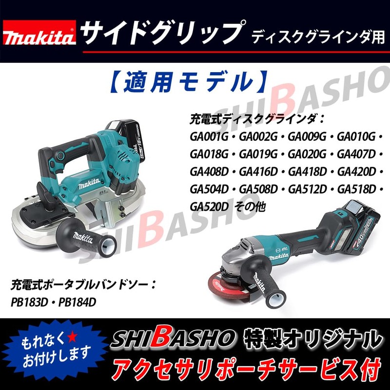 - Side grips for Makita disc grinders. This is an authentic product with the Makita logo. In addition to disc grinders, it is compatible with some rechargeable portable band saw and 100V models