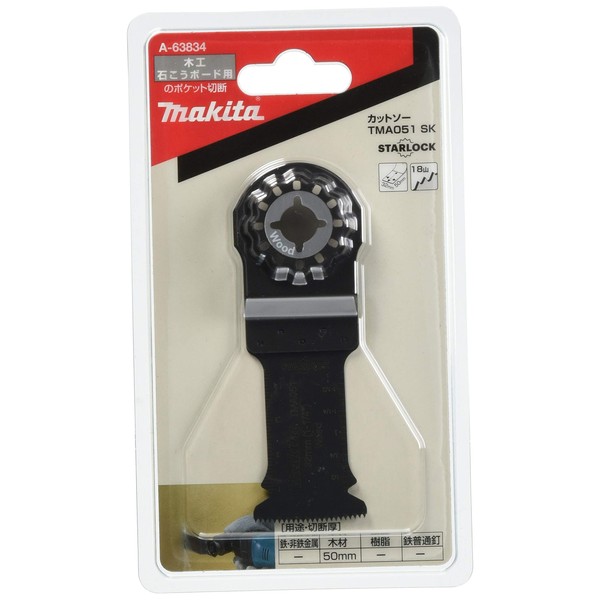 Makita TMA051SK (A-63834) Multi-Tool Cut Saw for Wood, Width 1.3 x 1.6 inches (32 x 40 mm), Carbon Tool Steel Blade