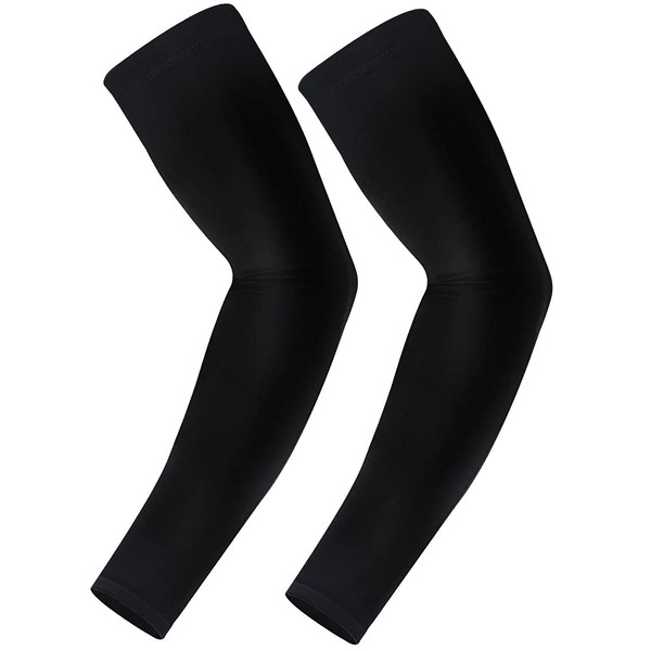 [Makitsu] アームカバー 腕カバー 無地 冷感 吸汗速乾 サラサラ 滑り止めシリコン付き UVカット UPF50+ 日焼け防止アームカバー スポーツ活動用 男女兼用 両腕2枚入り (ブラック, S)