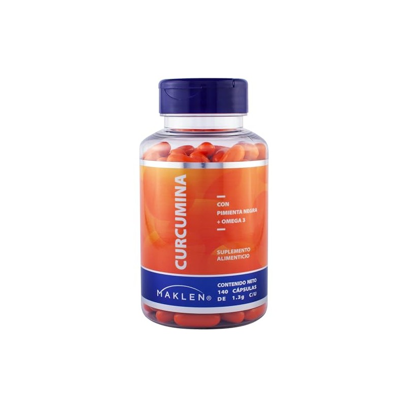 Maklen Curcuma - Curcumina 95% con Pimienta y Omega 3 - Antioxidante y Antiinflamatorio Natural - Mejora la Salud Articular y Digestiva - 140 Capsulas Softgels de 1,300 mg