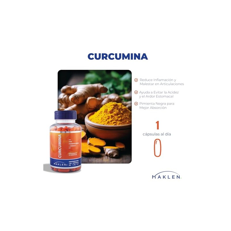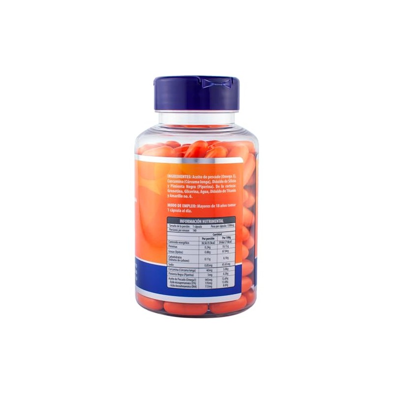 Acerca de este artículo Fórmula Avanzada: Cada cápsula contiene 1,300 mg de cúrcuma con curcumina, complementada con pimienta negra y Omega 3 para una mejor absorción. Potente Antioxidante: La curcumina es conocida por sus propiedades que contribuyen al bienestar del cuerpo y el mantenimiento celular. Bienestar Articular y Digestivo: Ideal para quienes buscan mantener el confort en las articulaciones y un equilibrio digestivo saludable. Absorción Mejorada: La combinación con pimienta negra favorece la biodisponibilidad de la curcumina, optimizando sus beneficios. Fácil de Tomar: Presentación en cápsulas softgel que facilitan su consumo diario y aportan una alta concentración de ingredientes activos. Calidad Garantizada: Elaborado con ingredientes de alta pureza, sin conservantes artificiales, apto para quienes buscan un complemento confiable.