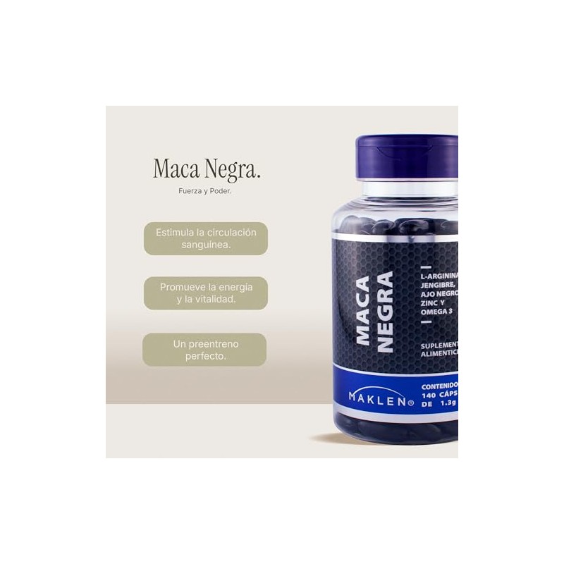 Maklen Maca Negra con Arginina, Zinc y Omega 3 - Suplemento para Energia, Vitalidad y Rendimiento Masculino - 140 Softgels de 1,300 mg