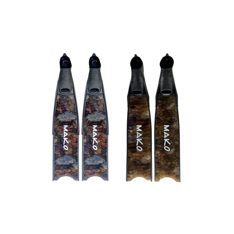 MAKO Big Kahuna Freedive Fins – Size 14-15 Long Blade Freediving Fins – Extra Wide Foot Pocket – 3D Reef Camo Polymer Blades – Soft Flex – Designed for Big Divers with Large Feet