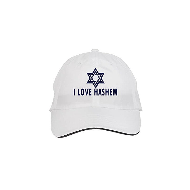 Makoroni - I Love Hashem Jewish Hat Adjustable Cap, DesO94 White